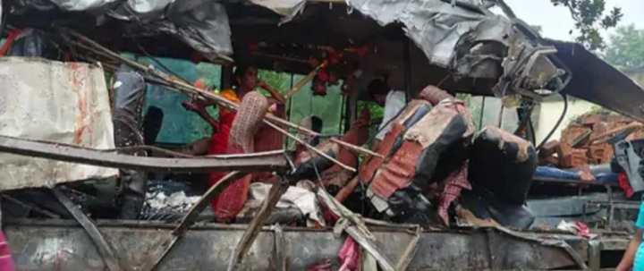 भीषण सड़क हादसा, बस-ट्रक की टक्कर में 18 कांवड़ियों की मौत, देवघर दर्शन करने जा रहे थे