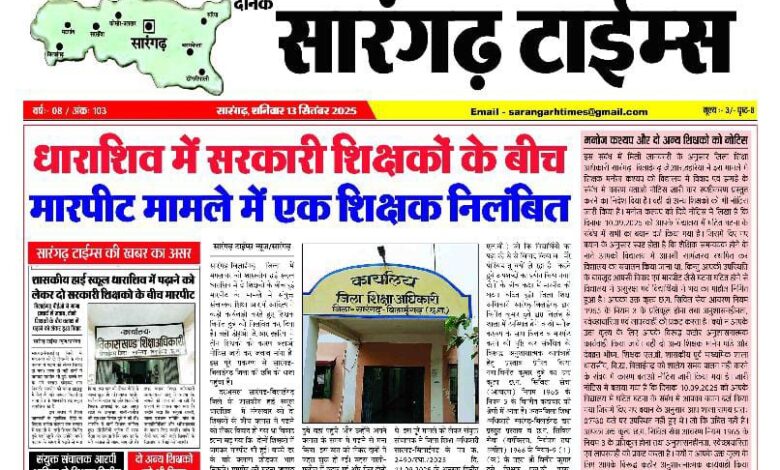 सारंगढ़-बिलाईगढ़ जिला : धाराशिव में सरकारी शिक्षको के बीच मारपीट मामले में एक शिक्षक निलंबित,