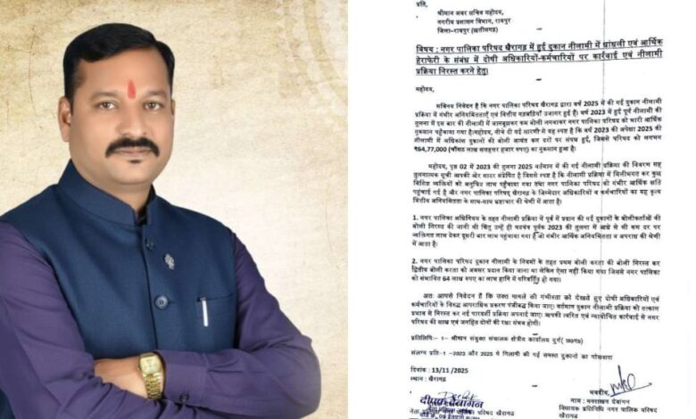 नियमों के तहत पहली बोली रद्द होने पर द्वितीय बोलीकर्ता को अवसर दिया जाना चाहिए था, लेकिन नगर पालिका के अधिकारियों ने नियमों को तोड़कर अपने पसंदीदा लोगों को अनुचित लाभ पहुंचाया. शिकायत पत्र में विधायक प्रतिनिधि ने कहा है कि नगर पालिका की इस मनमानी से सार्वजनिक संपत्ति को सस्ते में बेचा गया है, जो भ्रष्टाचार की श्रेणी में आता है. उन्होंने नगरीय प्रशासन विभाग रायपुर के अवर सचिव से आग्रह किया है कि इस पूरे प्रकरण की उच्चस्तरीय जांच कराई जाए और जब तक जांच पूरी न हो, तब तक नीलामी प्रक्रिया को निरस्त रखा जाए.