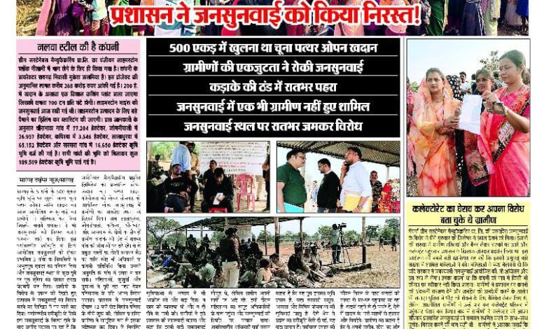 पत्थर ओपन माईंस खदान का 17 नवंबर को आयोजित जनसुनवाई का ग्रामीणो ने बहिष्कार कर दिया जिसके चलते प्रशासन ने भी जनसुनवाई को निरस्त करने फरमान जारी करना पड़ा। इस पर्यावरणीय स्वीकृति के लिये आयोजित जनसुनवाई को लेकर प्रभावित 5 गांवो के निवासियो ने अभूतपूर्व एकता का परिचय दिया और जनसुनवाई स्थल के कुछ दूरी पर पूरा एरिया को घेरकर तगडा घेराबंदी कर दिया। ग्रामीणो के विरोध के उफान को देखते हुए प्रशासन ने जनसुनवाई को निरस्त करने का लिखित में पत्र जारी कर दिया। वही इस मामले में जनसुनवाई स्थल पर टेंट आदि सामान तक नही लगाने देने वाले 200 से 250 महिला-पुरूष के खिलाफ बीएनएस के कई धाराओ में अपराध दर्ज किया है।
