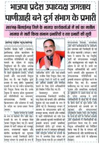 भाजपा ने जारी किया संभाग प्रभारियों व सह प्रभारी की सूची