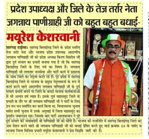 प्रदेश उपाध्यक्ष और जिले के तेज तर्रार नेता जगन्नाथ पाणीग्राही जी को बहुत बहुत बधाई- मयूरेश केशरवानी
