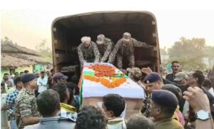 बालोद। मध्यप्रदेश के बालाघाट जिले के लांजी में तैनात सीआरपीएफ 7 बटालियन के जवान देवनारायण दर्रो की आज सुबह ड्यूटी के दौरान मौत हो गई। उनके गृहग्राम बालोद जिले के आमाडुला में पूरे राजकीय सम्मान के साथ जवान को अंतिम विदाई दी गई। तीन माह के मासूम बेटे ने अपने पिता को मुखाग्नि दी। इस दौरान सभी की आंखें नम रहीं।