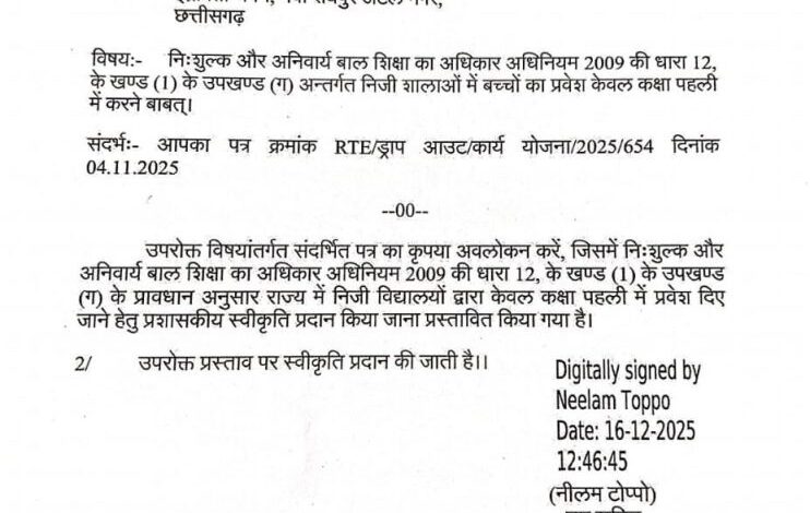 रायपुर। छत्तीसगढ़ सरकार के स्कूल शिक्षा विभाग द्वारा 16 दिसंबर 2025 को लिए गए निर्णय से शिक्षा जगत में हलचल मच गई है। इस निर्णय के अनुसार, शैक्षणिक सत्र 2026-27 से आरटीई शिक्षा का अधिकार अधिनियम के तहत निजी स्कूलों में कमजोर वर्ग के बच्चों का प्रवेश केवल कक्षा पहली से ही दिया जाएगा। पहले नर्सरी, प्री-प्राइमरी PP-1, PP-2 और कक्षा 1 में प्रवेश की सुविधा थी, लेकिन अब इसे सीमित कर दिया गया है।
