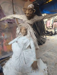 इसी कड़ी में शहर के प्रसिद्ध कालीबाड़ी चौक पर साल 2024 में रिलीज हुई हॉरर फिल्म ‘मुंज्या’ की थीम पर आधारित होलिका की मूर्ति लोगों का ध्यान खींच रही है। “मुंज्या” थीम के साथ बनाई गई इस मूर्ति के पास फिल्म के प्रसिद्ध किरदारों की झलक भी देखने को मिल रही है, जो लोगों के लिए आकर्षण का केंद्र बनी हुई है।