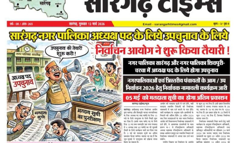 छत्तीसगढ़ राज्य निर्वाचन आयोग द्वारा सारंगढ़ और शिवपुरी-चरचा नगरपालिका के रिक्त अध्यक्ष पद तथा पार्षदो के रिक्त 15 पदो के लिये उपचुनाव के लिये तैयारी शुरू कर दिया है। इसके साथ पार्षद पद के लिये रिक्त 15 पद तथा नवगठ़ित चार नगर पंचायत में 4 अध्यक्ष तथा 60 पार्षदो का भी चुनावी तैयारी के लिये कार्यक्रम जारी कर दिया गया है। 5 मई को मतदाता सूची का अंतिम प्रकाशन किया जायेगा। बताया जा रहा है कि जून-जुलाई में उपचुनाव की प्रक्रिया संपन्न किया जा सकता है। छत्तीसगढ़ राज्य निर्वाचन आयोग द्वारा नगरपालिकाओं एवं त्रिस्तरीय पंचायतों केआगामी आम एवं उप निर्वाचन 2026 के लिए निर्वाचक नामावली तैयार एवं पुनरीक्षित किए जाने हेतु कार्यक्रम जारी कर दिया गया है। आयोग द्वारा जारी कार्यक्रम के अनुसार स्थानीय निकायों की निर्वाचक नामावली दिनांक 01 अप्रैल 2026 की स्थिति के आधार पर तैयार की जाएगी।