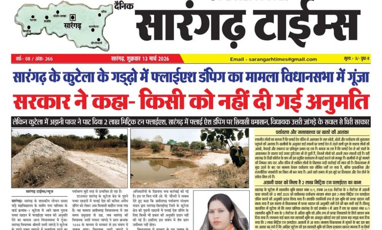 सारंगढ़ में फ्लाई ऐश डंपिंग पर सियासी घमासान, विधायक उत्तरी जांगड़े के सवाल से घिरी सरकार