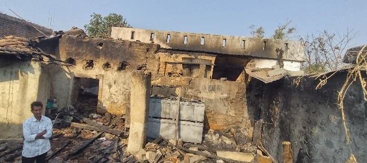 दहिदा के नावापारा गांव में ग्रामीण के घर में लगी भीषण आग घरेलू सामान जलकर खाक!