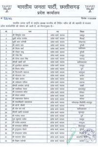 भारतीय जनता पार्टी छत्तीसगढ़ ने आज कुल 178 सदस्यों के साथ प्रदेश कार्यकारिणी सदस्यों की सुची जारी कर दी है उक्त सुची में सारंगढ़ बिलाईगढ़ जिले से पुर्व जिलाध्यक्ष सुभाष जालान को प्रदेश कार्यकारिणी सदस्य, सारंगढ़ की पुर्व विधायक श्रीमती केराबाई मनहर और सारंगढ़ से ही पुर्व विधायक रही सुश्री कामदा जोल्हे को प्रदेश कार्यकारिणी में स्थाई आमंत्रित सदस्य बनाया गया। सारंगढ़ बिलाईगढ़ जिला के भाजपा पदाधिकारियों ने तीनों ही प्रदेश कार्यकारिणी सदस्यों को सोशल मिडिया में बधाई भी प्रेषित कर रहे हैं।