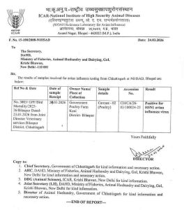 छत्तीसगढ़ में बर्ड फ्लू की पुष्टि, जांच रिपोर्ट के बाद इनफेक्टेड और सर्विलांस जोन घोषित, मुर्गे–मुर्गियों और पोल्ट्री उत्पादों को नष्ट करने के आदेश, बंद रहेंगी दुकानें….
