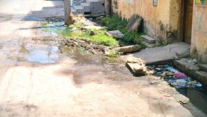 और राहगीर नालियो की पानी मे पैदल चलने के लिये मजबूर है।