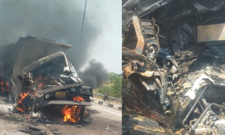 रायपुर-कोरबा नेशनल हाइवे में भीषण हादसा, ट्राला में आग लगने से जिंदा जला ड्राइवर,